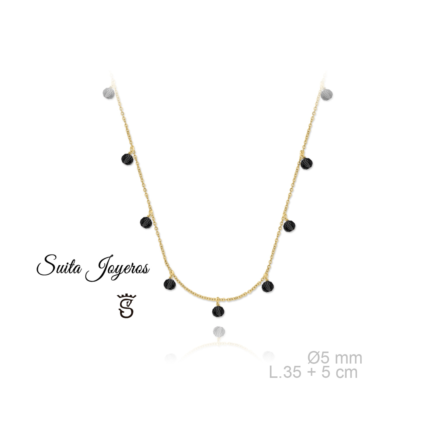 Gargantilla de Plata de Ley en dorado con zirconitas colgantes.