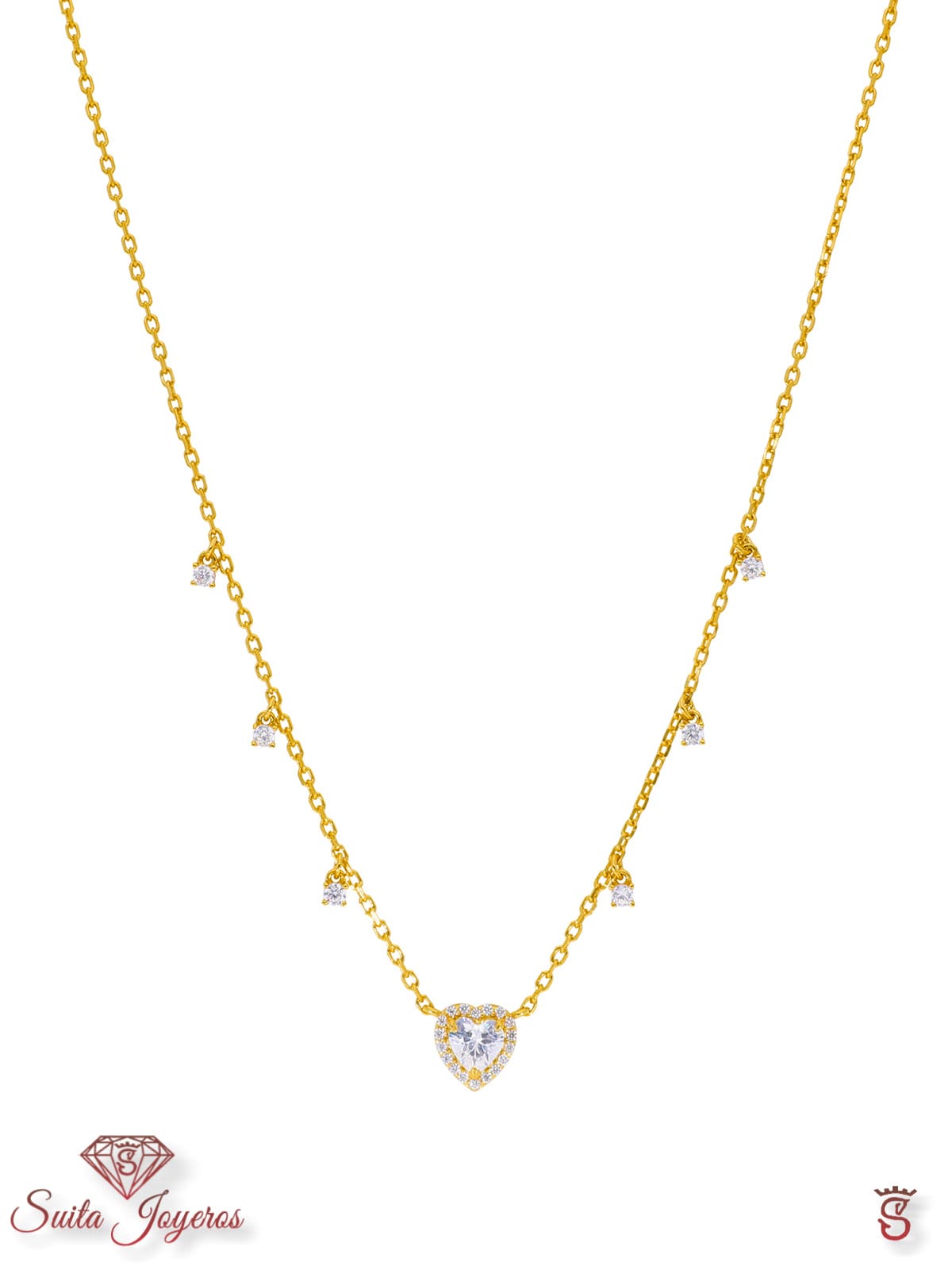 Collar corazón. Plata de 1ª Ley baño en oro de 18k. Circonita talla corazón. Cierre auto ajustable reasa.. Colección Selene.