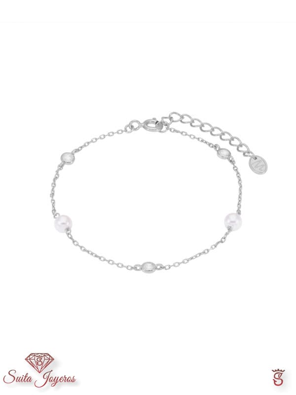 Pulsera perlas. Plata de 1ª Ley rodiada. Perla. Cierre reasa. Cadena adaptable.